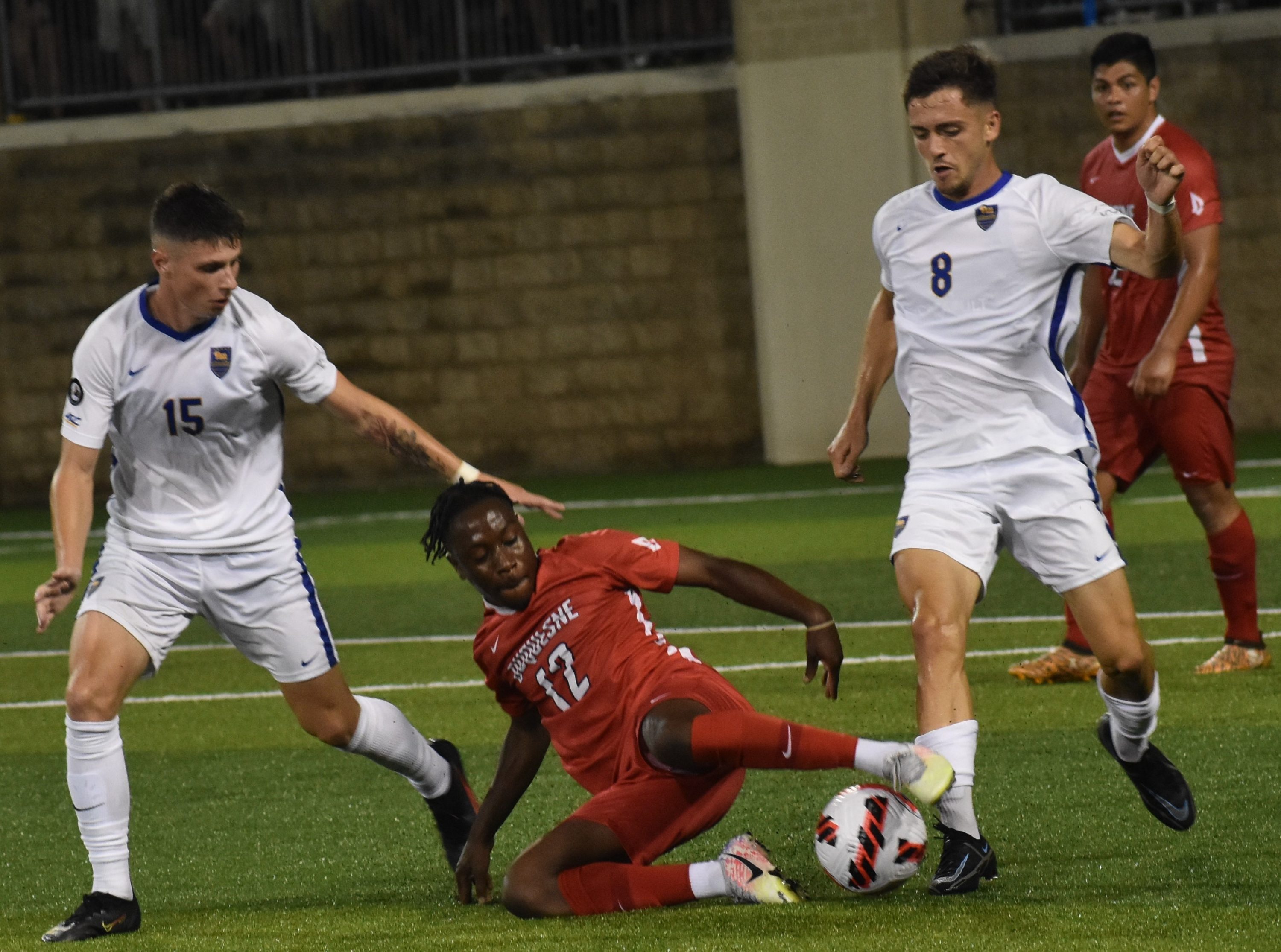 Duquesne strung rushes together and get inside the box twice before Pitt was able to catch up and stop the attack.
