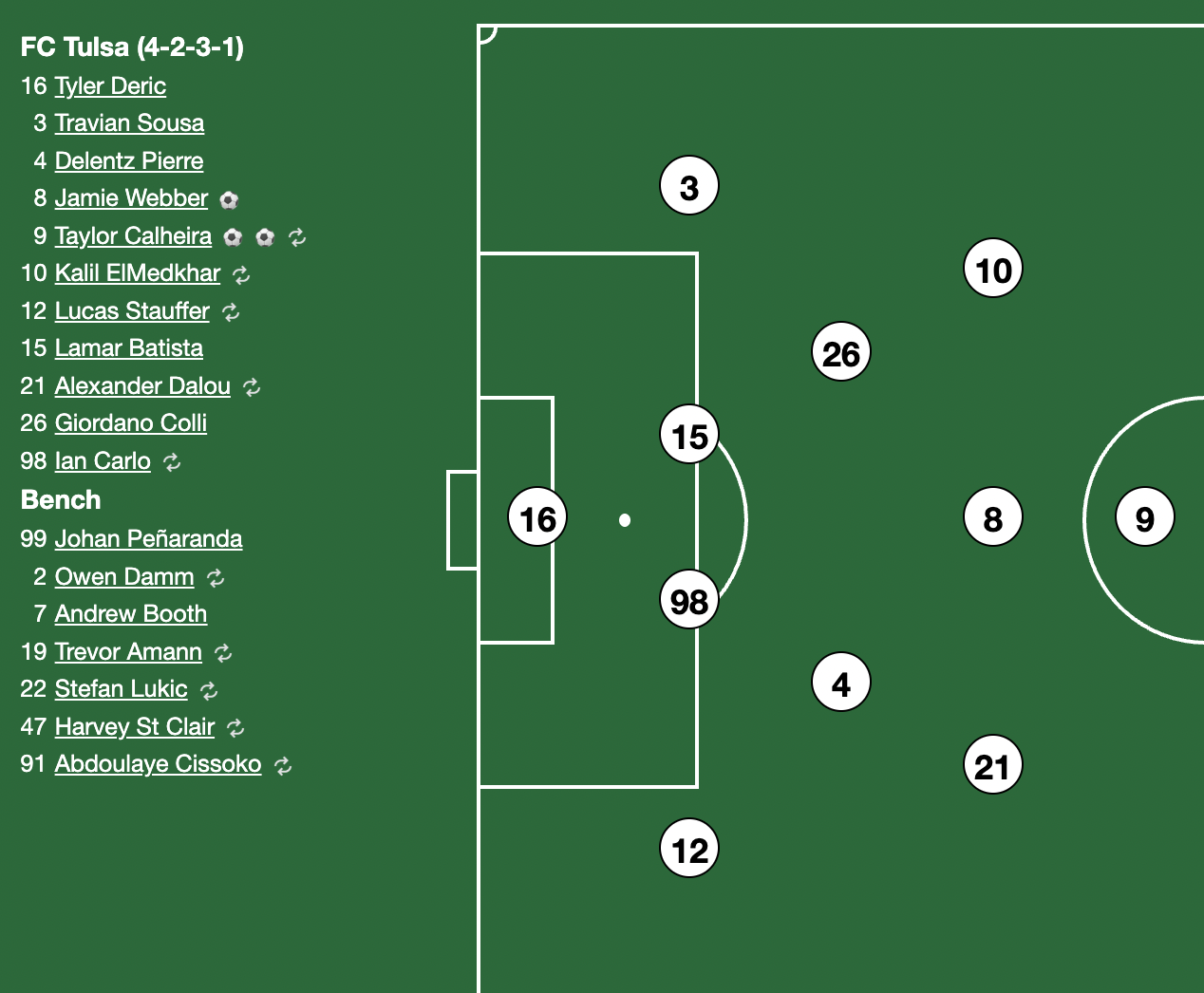 For Tulsa this year, Deric played a pair of games while Peñaranda was out. Then Peñaranda took over again on October 18 and 25. Peñaranda started the USL Playoffs for round 1, but then Head Coach Luke Spencer had Deric start the Western Conference semis and finals. Who will start the USL Championship Final? I have no idea.