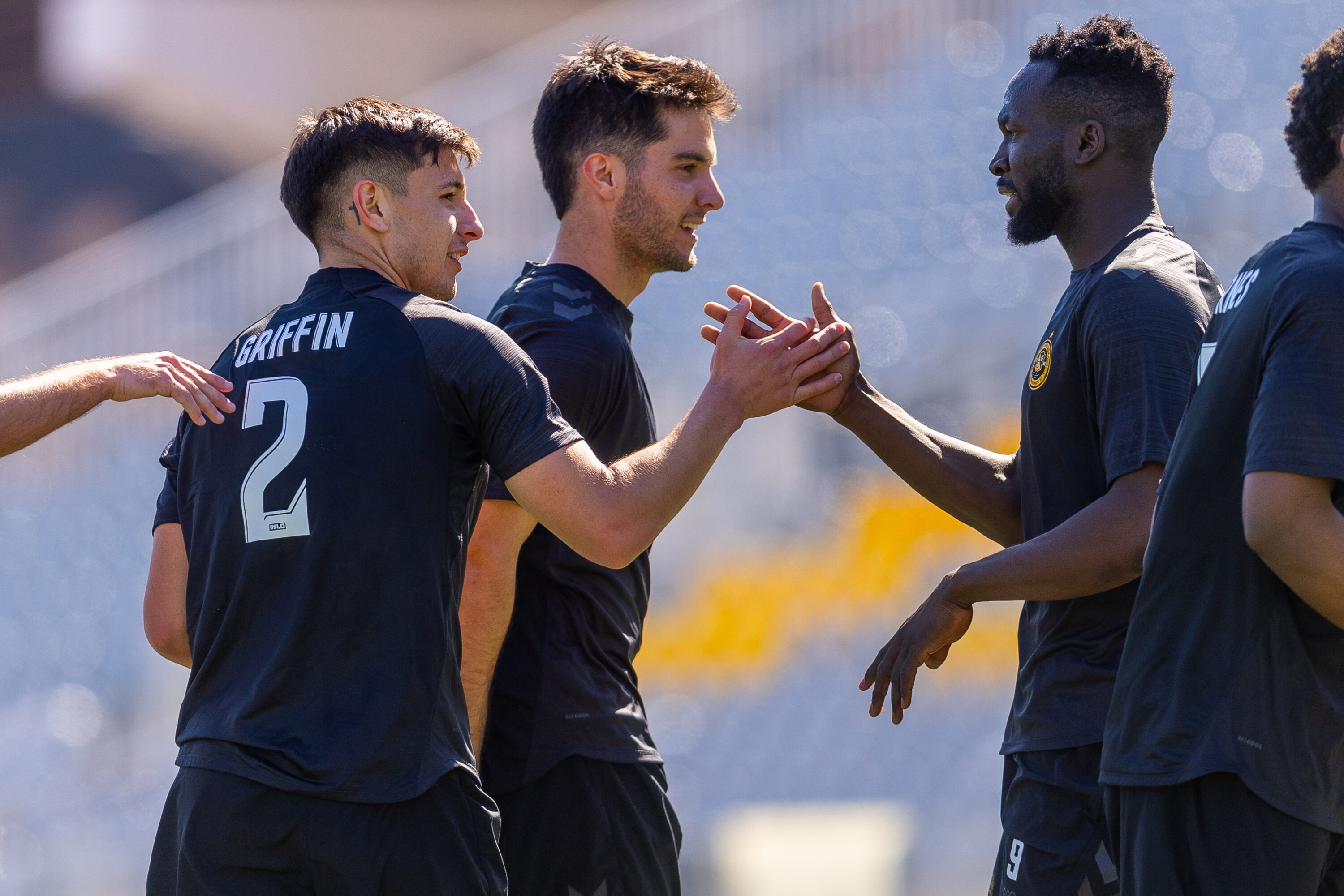 Etou again worked the left side and went for goal, and his effort struck the upright. The rebound came directly to Griffin standing near the penalty spot, and the Hounds’ captain tucked the ball home for his first goal of the preseason.